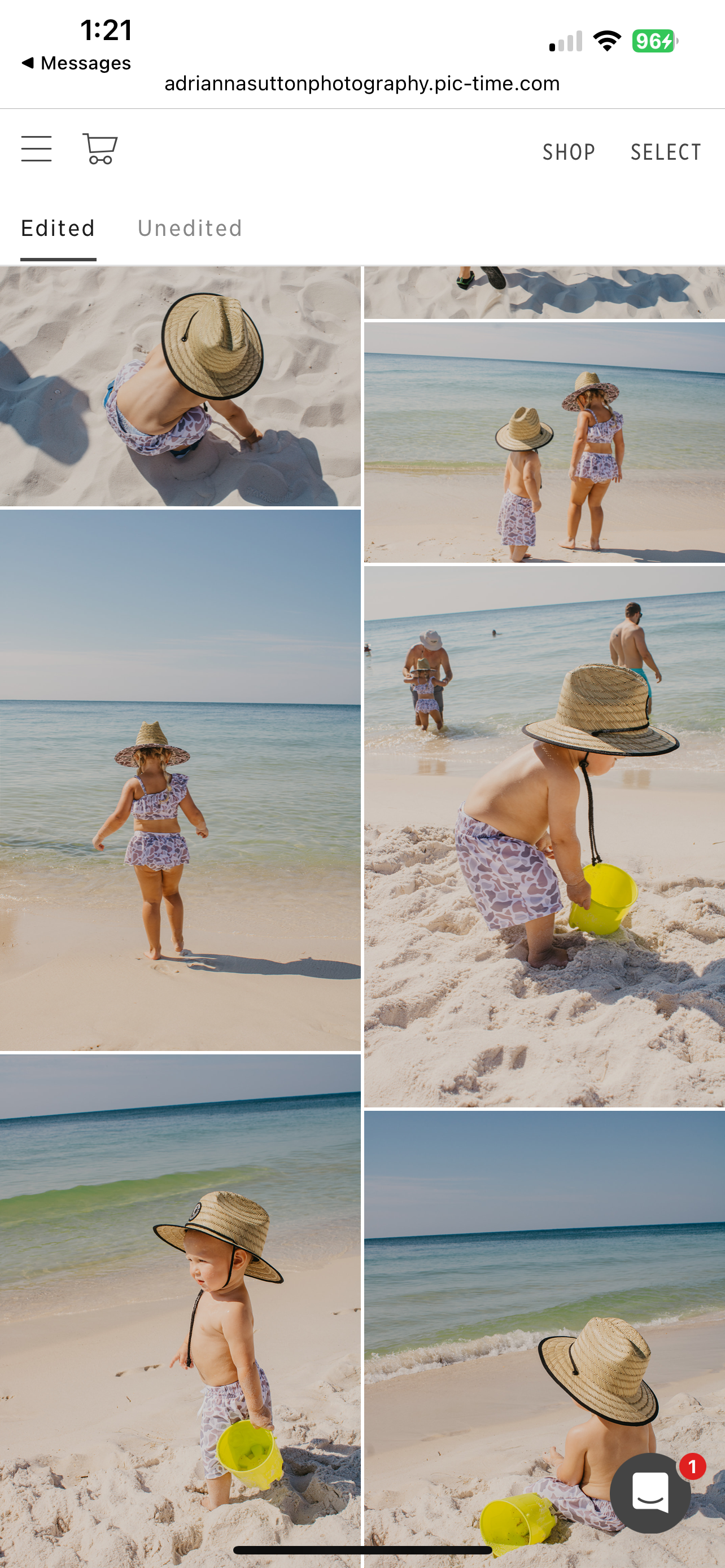 Here is a photo of a real gallery. You will have two sections to your gallery: Edited and Unedited.